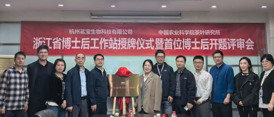 11月1日,浙江省博士后工作站授牌仪式暨首位博士后开题评审会在杭州茗宝生物科技有限公司举行。余杭区人力资源和社会保障局人才开发科张远进主任,浙江大学、浙江工业大学、浙江工商大学、中国农业科学院茶叶研究所等高校和科研院所专家教授,杭州茗宝董事长及班子成员和首位进站博士后共同参会。